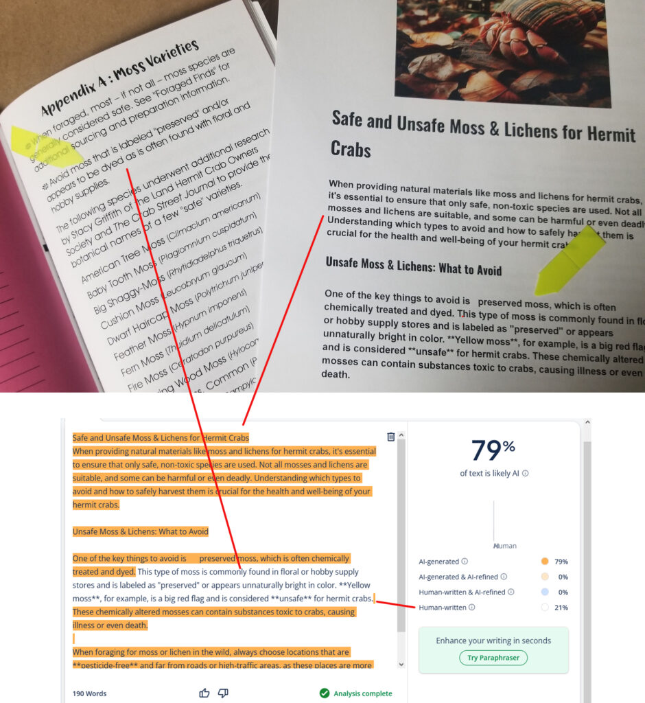 Copyright 2025. All Rights Reserved. The individual copyrights of any documents shown remain with the actual authors of those works. The individual, unedited photos of pages from “The Complete Guide to Land Hermit Crabs and Their Care: Changing the Mindset of Hermit Crab Community” were permitted for use on this site only. While screenshots are “okay”, a link to the full context of this site is preferred.