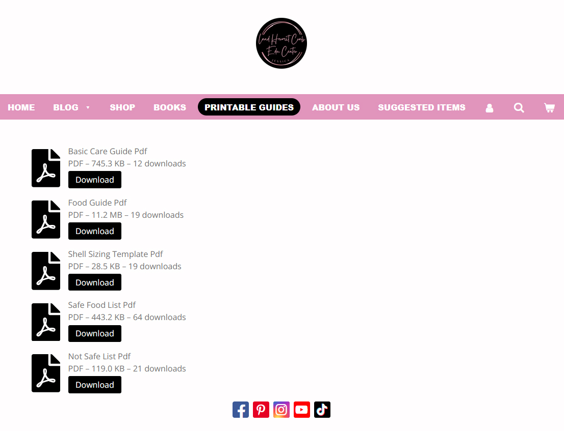 The printed PDFs as shown in the subsequent photos were obtained from the Files of The Crabby Hermit (Hermit Crab Care and Education) “TM” Group prior to their deletion as requested by both Stacy Griffith and Stacey May on January 11, 2025, and from landhermitcrabeducenter.com prior to the suspension of its domain name and website on January 12, 2025.